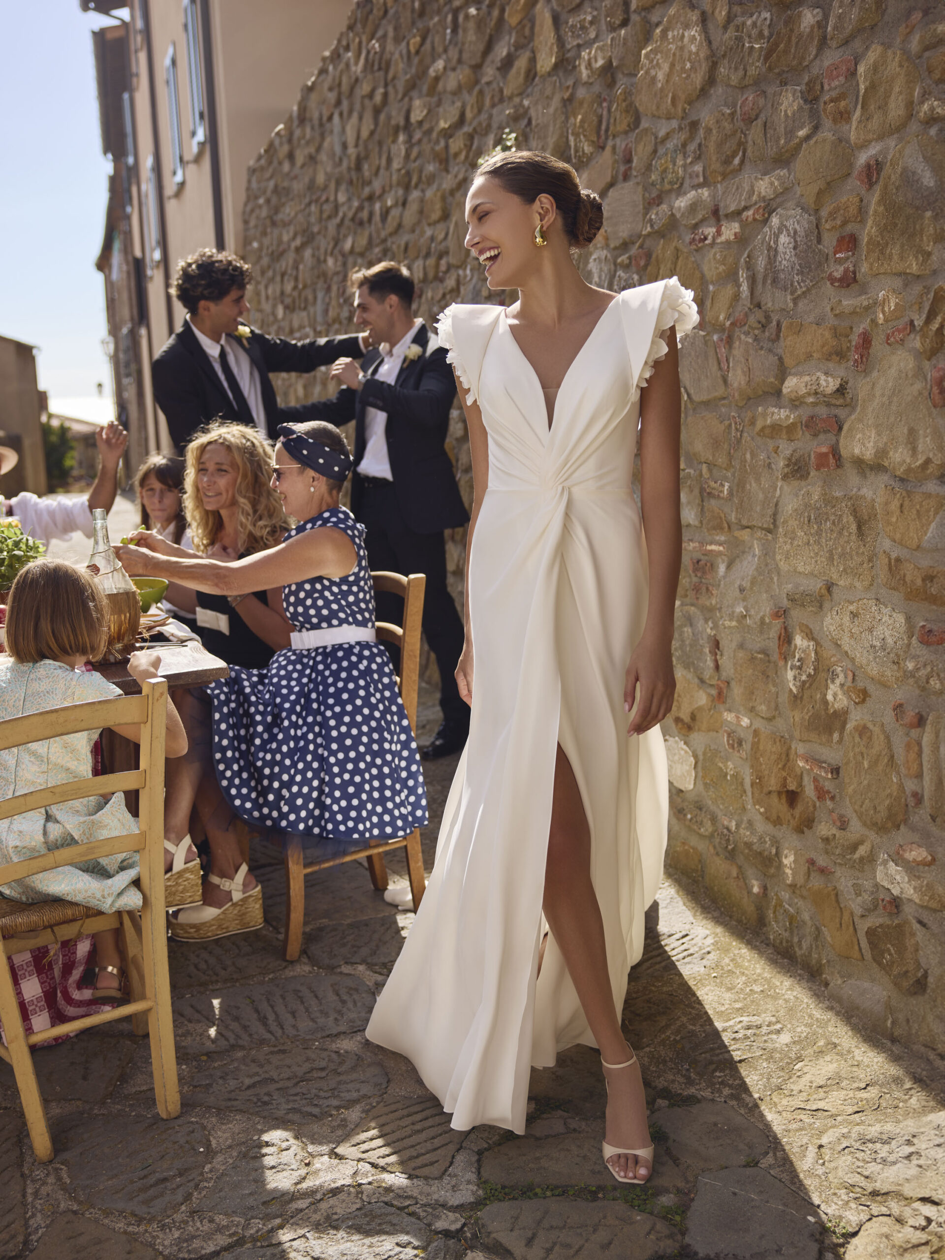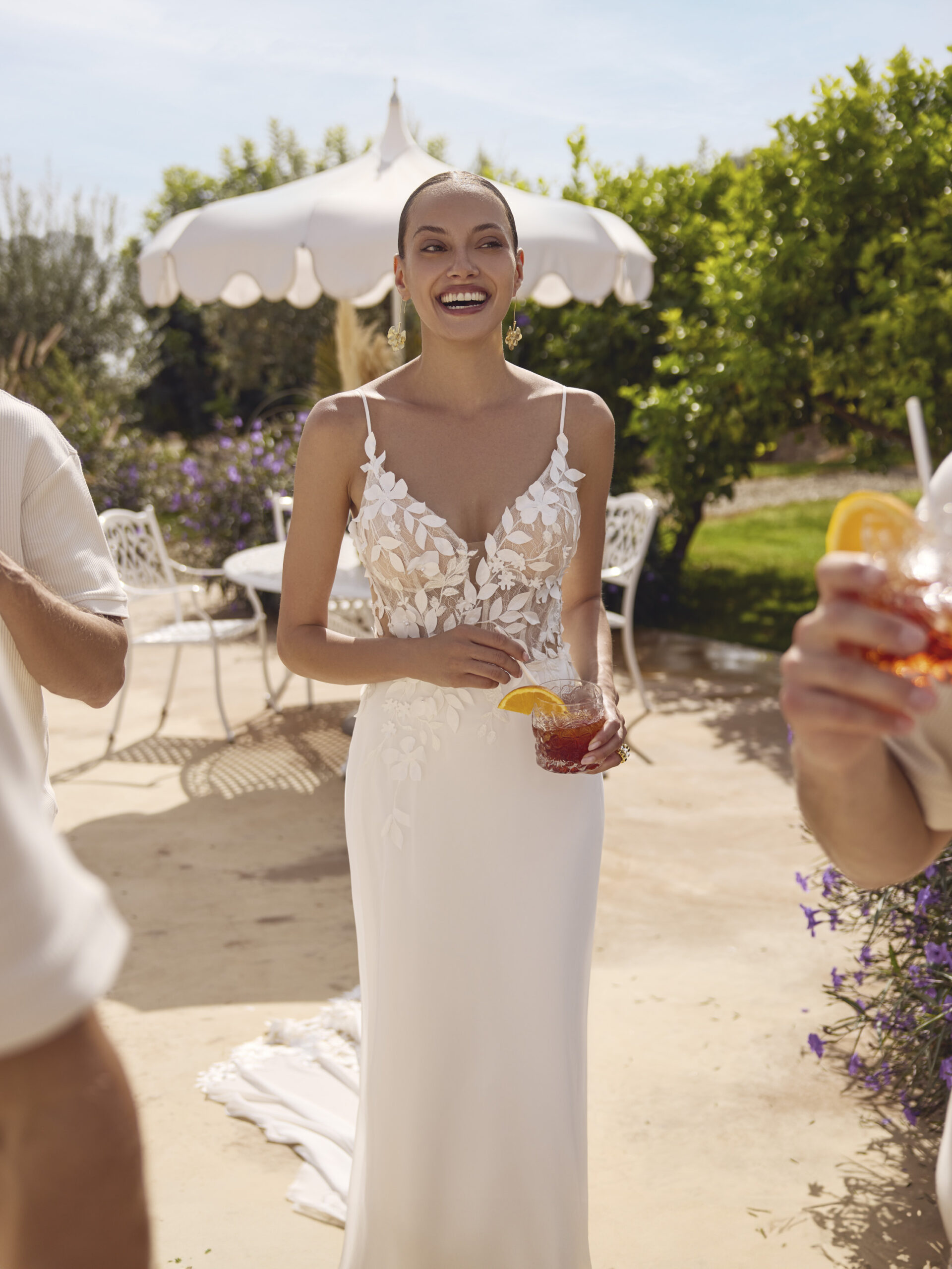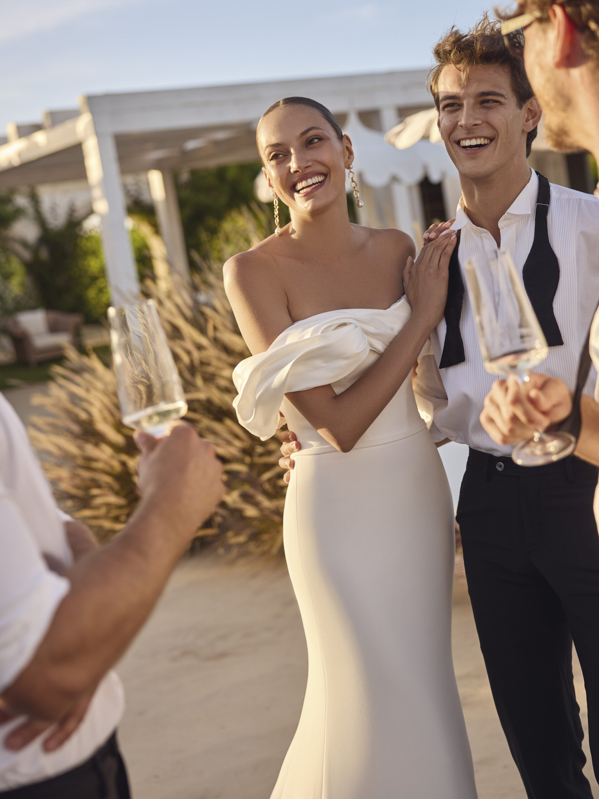 Die Brautkleider von Modeca sind elegant und luxuriös. Der niederländische Brautmodenhersteller schafft es, durch die Klarheit und Schlichtheit der Designs, die selbstbewusste Aura der Braut zu betonen.